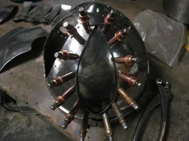 Empezar con la cúpula y Leco o perno en un panel, entonces sobre él y uno a la vez quitar cada sujetador y reemplazarlo con un remache. Empiece con el panel posterior y hacia la parte delantera al igual que para hacer los agujeros en el primer lugar.
