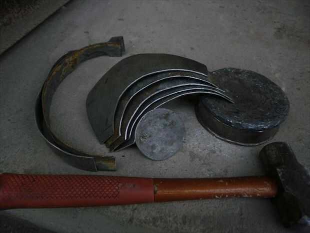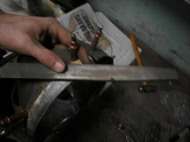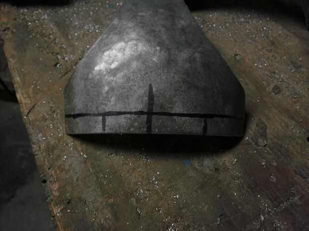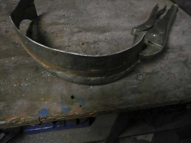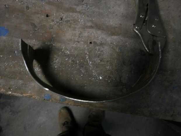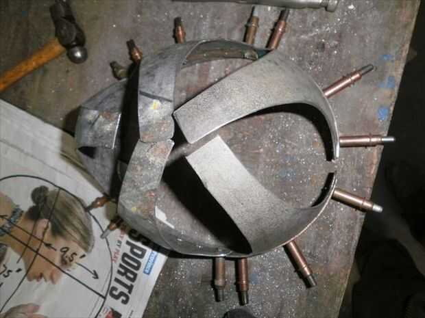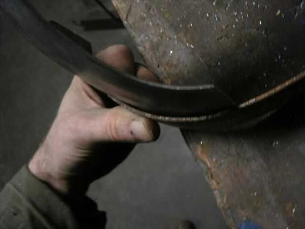 Por lo tanto, empezar por trazar su banda frente a la mesa de trabajo entonces tomar una de las secciones de la banda y colocar en la parte superior delantera y centro para comprobar el ajuste. Marca donde debe ser ajustado luego use una goma o mazo de golpe muerto para ajustar la curva en un juego de T según sea necesario. hacer un poco más en un momento y volver a comprobar la curva.