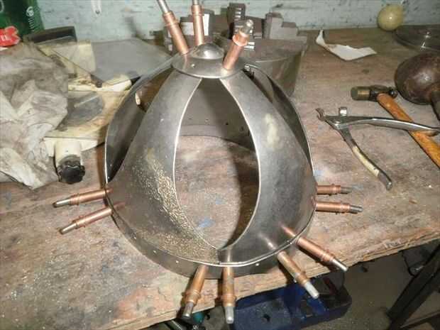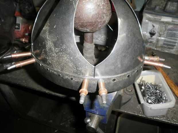 En preparación para el remachado volver a montar todo con clecos, pero usé el mínimo para mantenerlo todo junto. A partir de ahí trabajé mi camino alrededor de todos los orificios abiertos en la banda de la ceja, luego fui clavado en la placa superior. A continuación, quitar la mayor parte de los clecos y había clavado esos puntos. Sin embargo dejo algunos lugares en la banda de la ceja no remachada. Hay 4 remaches en la parte frontal que será compartido con la nasal, por lo que dejé abierto y 2 en la parte trasera donde los clecos y un poco de chatarra tienen la espalda cerrada hasta tengo los paneles clavados en.