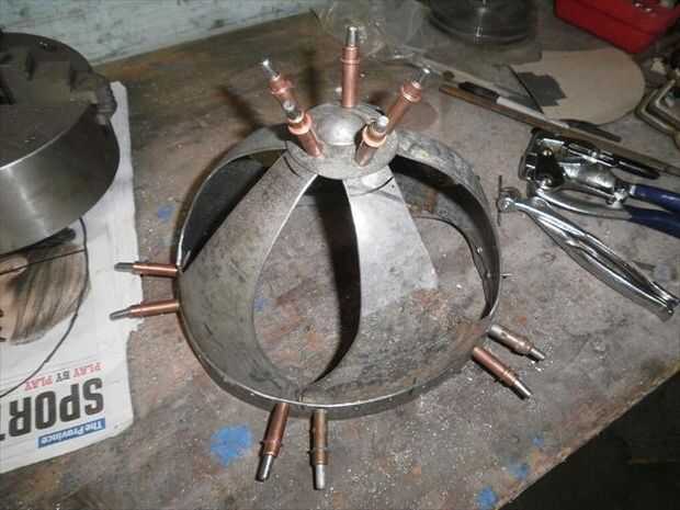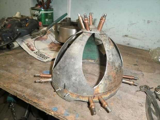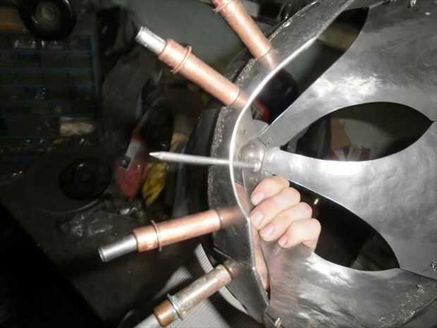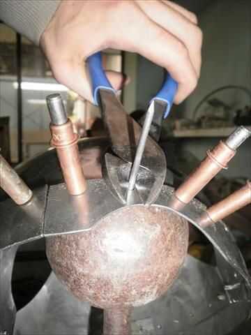 Una vez que has establecido donde hacer pivotar el martillo que sólo mantener hacer pivotar el martillo en el punto y la pieza de trabajo debajo de él. El objeto es golpear casi cada pedacito de área superficial expuesta, esto debe cambiar los terrones pequeños de trasvasar a una textura incluso de pequeñas facetas. generalmente tarda unos pases de esto para conseguir todo lo que mira agradable. A partir de ahí cualquiera puede dejar como está, que es lo que me gusta hacer, o puede arena y moler las esquinas de esas facetas dejando una superficie lisa preparada pulir.