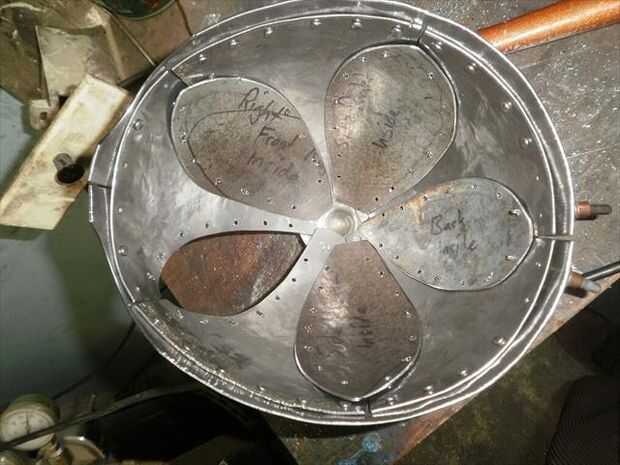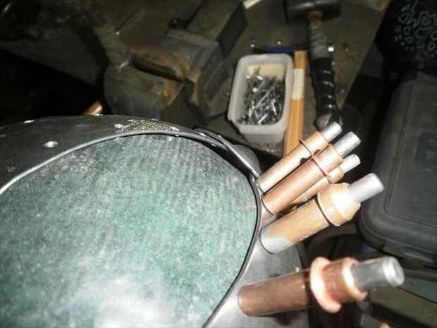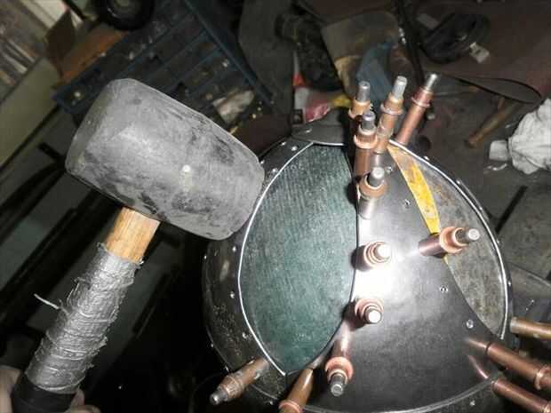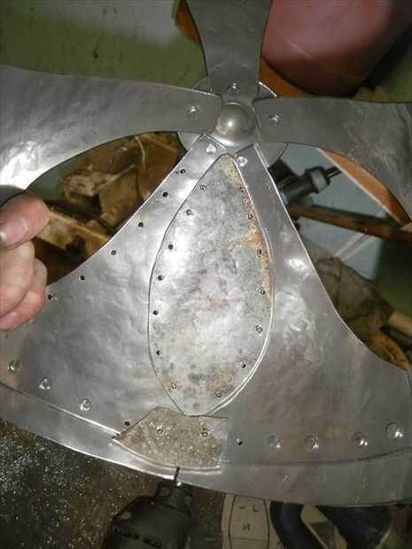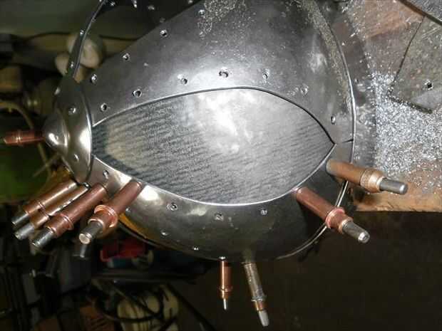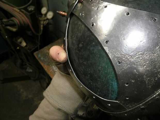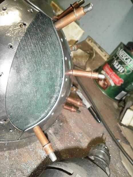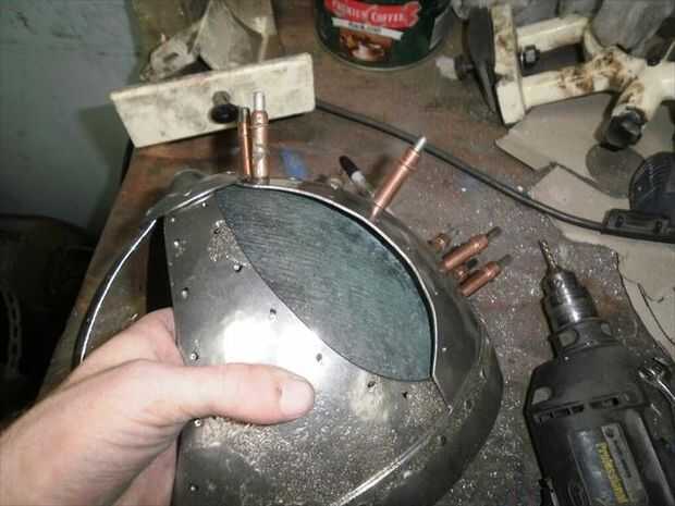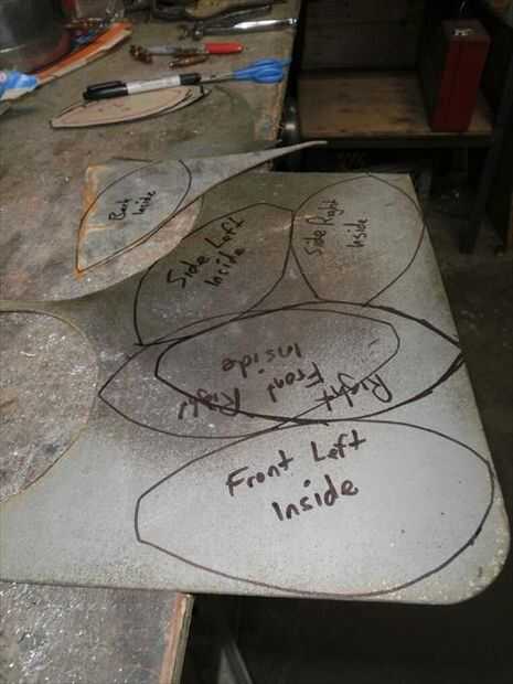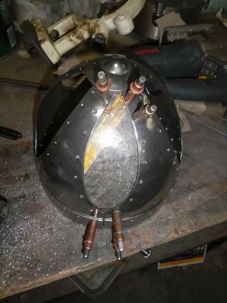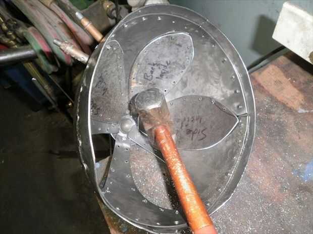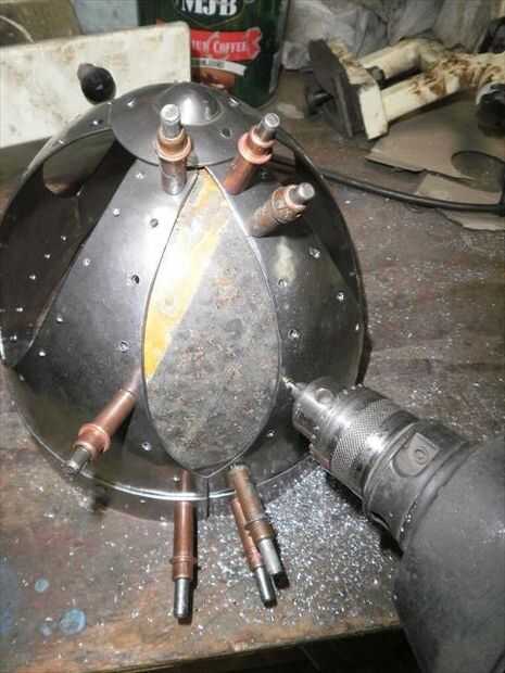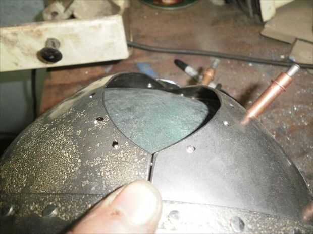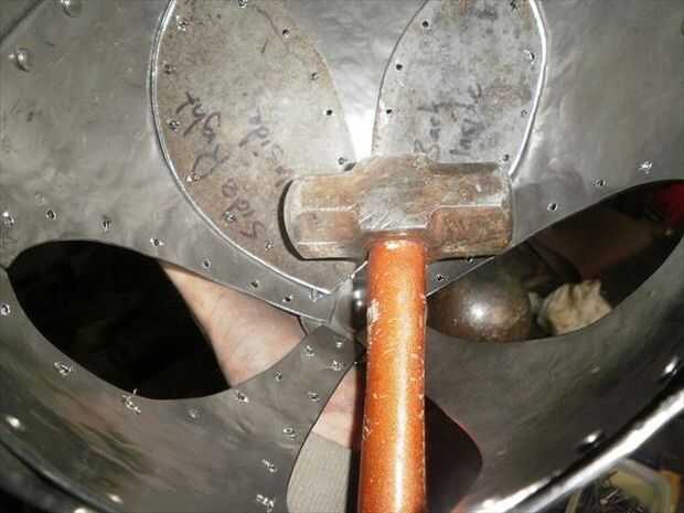 El segundo panel no encajaba tan bien. Necesitaba alguna curvatura más añadido a él. Para agregar esa curva extra sólo solía las fauces de la vice y el músculo un poco para ajustar la curva en su lugar. Flexión con la mordaza me deja llegar muy cerca de conexión derecha, pero la parte superior estaba todavía fuera de control. Por lo que había perforado los agujeros para el lado que encajarán bien, luego poner clecos en cada agujero para sujetar en su lugar. A continuación, ponerlo sobre el juego de pelota y usa un mazo de goma para tratar de golpear en la alineación. Me tienes a medio camino a donde lo necesitaba, así que terminé por alcanzar a través de con mi martillo dishing y golpear el panel el resto del camino en lugar del interior. una vez que estaba feliz con el ajuste perforar el resto de los agujeros y se trasladó.