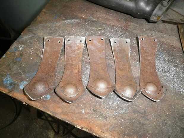 Los listones por sí mismos están todavía bastante fácilmente doblados, así para reforzarlos que poner una barra de refuerzo a través de ellas. Para hacerlo me comentar hacia fuera una longitud de 3/4" acción de la barra y utiliza un martillo de maquinistas modificado para estirar un lado, haciendo que la curva en más de una forma de cono. las fotos explican mejor de lo que pueda.