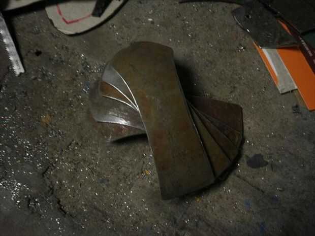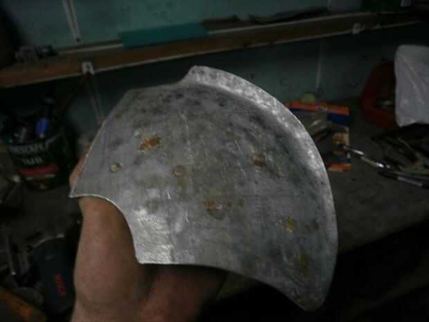 Ahora, toma de las placas de la mejilla y les dan un pase de o 2 en el plato bajo. Mira st las fotos para ver cuánta curvatura te están buscando. Una vez que haya servido las placas de la mejilla que necesitará poner una llamarada a lo largo del borde posterior. Bueno, no es necesario, pero se ve bien, es fácil, refuerza las placas y le ayudará a desviar armas lejos de la abertura en la parte posterior de la placa de gorjeo. Así que en realidad no hay ninguna razón no a.
