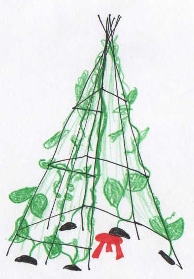Plantas trepadoras: calabaza, calabazas, guisantes, habas, etc..