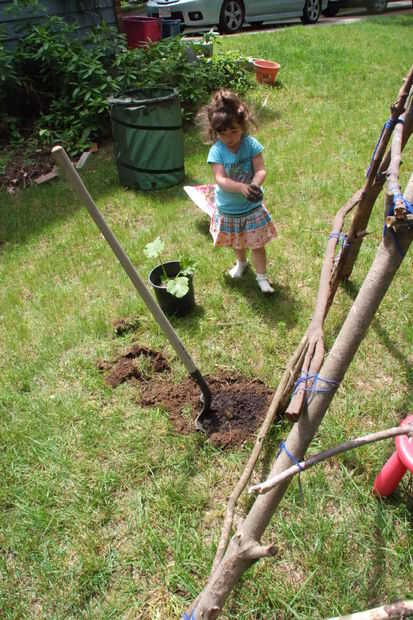 Cavaron un agujero pequeño en la parte baja de los norteamericanos y hecho un montículo añadiendo estiércol deshidratado, (o uso compost o tierra) trasnplanted plantas que crecen en otras partes de la yarda, pero podríamos plantar semillas o plántulas. Incluso podría poner macetas alrededor del tipi. Intentamos añadir una planta colgante en la parte superior de los indios, pero no mira a la derecha.