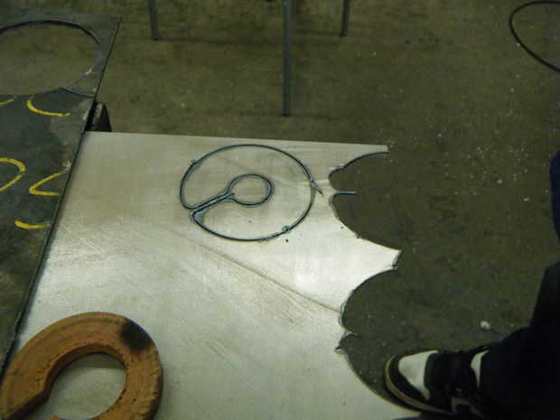 Cada disco se corta de una hoja de acero usando un cortador de plasma. La plantilla [hecha en el paso 3] está sujeta a la hoja de acero y luego corre a la cortadora de plasma alrededor de la plantilla de corte del disco.