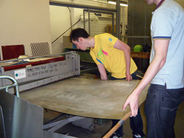 Los bordes de los discos luego se muele hasta el tamaño adecuado utilizando una esmeriladora de banco [nuestros discos fueron 64mm de diámetro]. Esto también elimina las rebabas dejadas por el cortador del plasma. La superficie de los discos también son tierra hacia abajo usando una amoladora angular para quitar cualquier rebaba de la superficie y mejorar la estética.