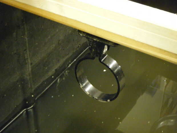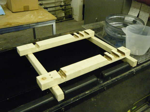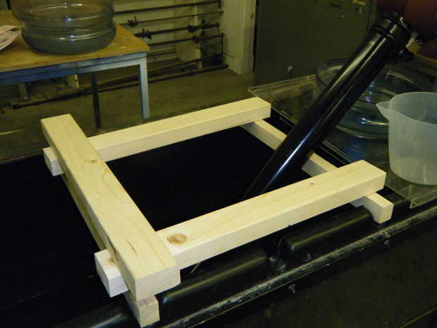 Dos 'piernas' vienen de la parte posterior final de marco cuadrado y esto tenía dos juegos de ganchos en él que otra clavija con otro soporte se encuentra en y esto puede alterar el ángulo mayor. El tornillo se lleva a cabo en el lugar en el marco por un collar sencillo que se encuentra en la parte inferior con una placa en el extremo que se apoya el extremo del tornillo contra y también hay otro collar que se encuentra antes de la primera escuadra y deja el tubo se deslice hacia abajo cualquier otro sosteniéndolo en su lugar.
