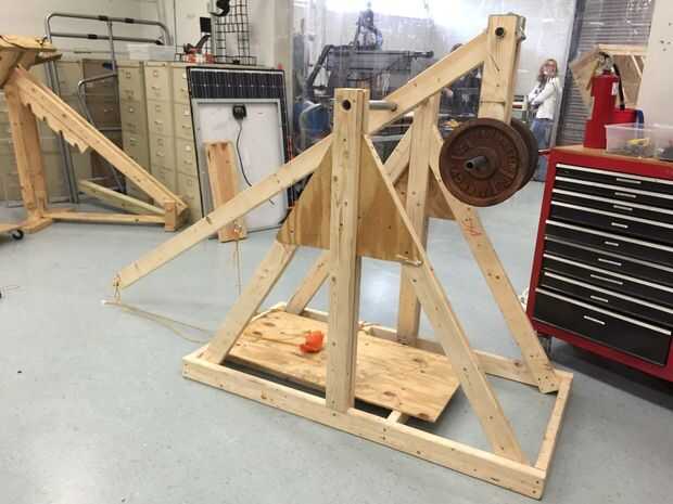 Una compilación de TrebuchetMateriales:madera.13 pulgadas ancho X 16 pulgadas largo6 de ancho X 16 alto X 1.5 largo.1.5 en X 1 en X 3 pies de madera.5 en h X 12 pulg ancho x 3 pies de longitudtaladro. broca para agujero el tamaño de su cadena.clavo p