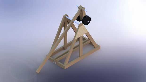 Para nuestro diseño utilizamos SolidWorks para construir virtualmente. Después de eso utilizamos SolidWorks y un Simulador Virtual de Trebuchet para probar.