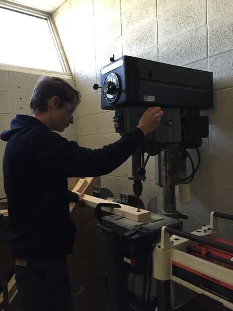 Para obtener agujeros perfectamente alineados utilizamos el taladro. Algunos de los agujeros que hicimos exactamente el mismo tamaño como la barra entonces ellos lija un poco para reducir la fricción en el punto de pivote del brazo y la barra.