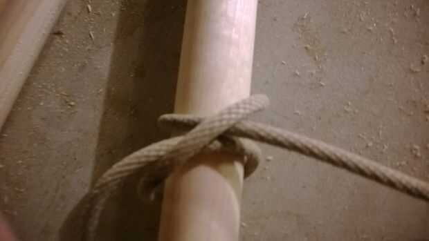 3. tomar los otros dos polos del mismo tamaño y los ponen sobre una superficie plana a continuación el polo anudado,