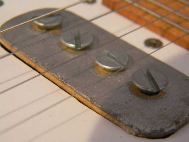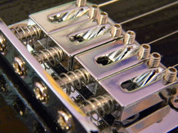 -Puente: en este caso la pieza de metal en el extremo inferior de la guitarra que también sostiene las cuerdas.