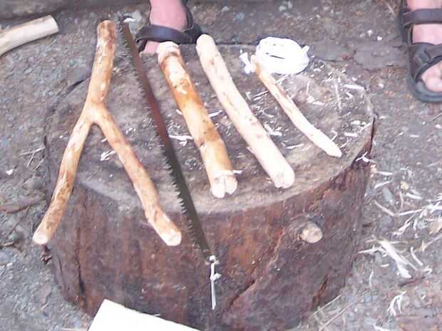 Ramas deben estar muertos, bien condimentados, secar madera. Aparte de las ramas encontradas en el sitio, el peso es insignificante. El espacio tomado en un paquete es insignificante. Envuelvo mi hoja en un grande de la bobina alrededor de la parte interior inferior de mi paquete dentro de una simple funda de cartón. Para evitar perder los pasadores, puede estar vinculados a la hoja de sierra para orificios que existen en ambos extremos.
