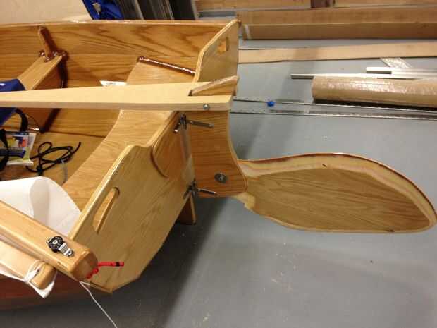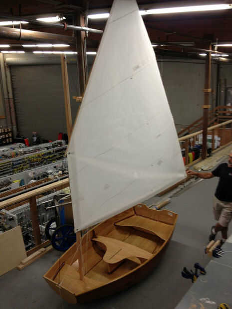 Porque quería ser capaz de salir a navegar por mi mismo si es necesario, hice un carro de 2 x 4 y grandes neumáticos (que hace que el flotador de dolly). El carro se ajusta firmemente entre el centro y popa frustra cuando se conduce hacia fuera del lago. Los lados de la cerradura del carro contra los patines en la parte inferior de la embarcación para que no se tuerza. Enrollar la vela con los largueros y envuélvalo con la driza principal. En la longitud diseñada, el mástil no encaja dentro de la embarcación, pero parece un poco larga, por lo que algunas personas han cortado el mástil hacia abajo lo suficiente para que quepa dentro de la embarcación.