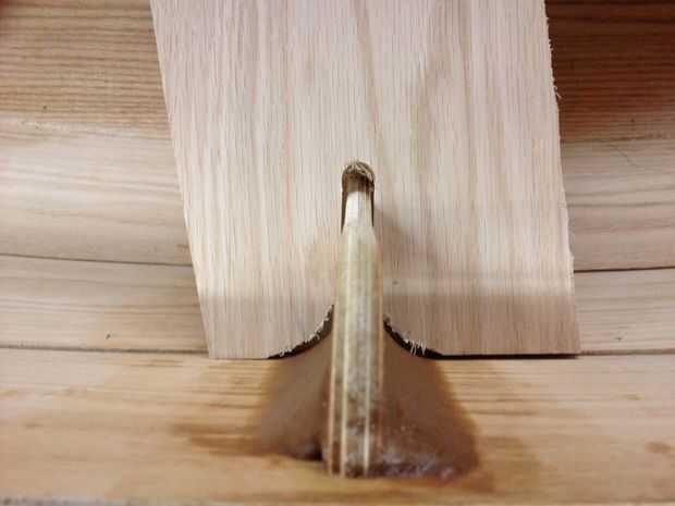 Mientras que he hacer aserrín, cortar el agujero del mástil (socio) en el avance frustrar por perforación de agujeros en las cuatro esquinas (para el mástil cuadrado que vamos a hacer), luego recorte los lados, presentar suave y redondo sobre el borde superior con el router.