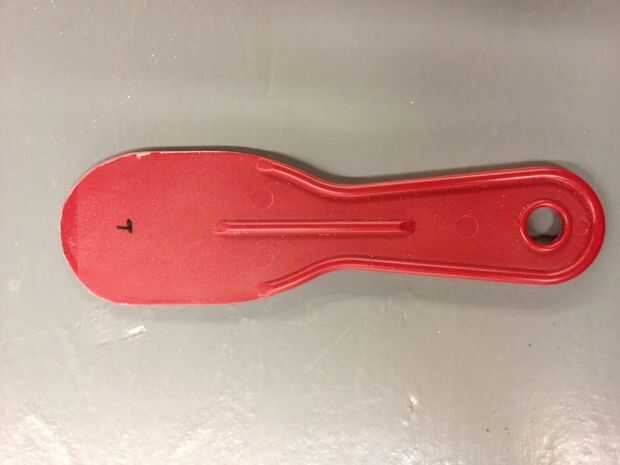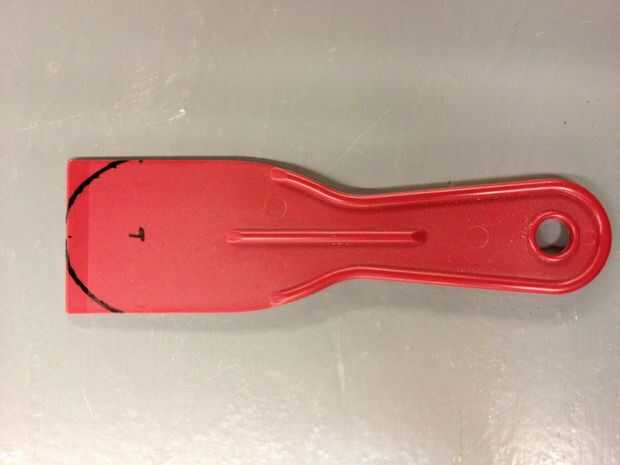 Los mamparos Haz cosidos en su lugar al igual que los paneles. Hará la ya dura (y mucho mayor embarcación) totalmente estructuralmente y empujar/tirar de los lados en su forma final. Haga filetes de 3/4""tab"entre los puntos de sutura para trabarlo en su lugar, retire las puntadas y hacer larga, Lisa 1" filetes. Los filetes más pequeños se Haz cubiertos por los filetes más grandes. Usé dos diferentes separadores plástico modificados para hacer este paso. Cada separador fue cortado con un cuchillo de la caja y archivado/arena en su forma final.