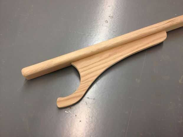El auge (parte inferior de la vela) es un poco más complicado. Cortar el cuello de cisne (punto de pivote del brazo) mediante el uso de un serrucho en primer lugar, asegúrese de sujetar firmemente al Banco de trabajo, corta el perfil. Esto consigue unida a otra pieza de hemlock de 1 x 3, después de que se ha cortado a la longitud y los bordes han sido redondeados sobre.