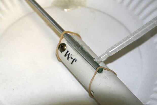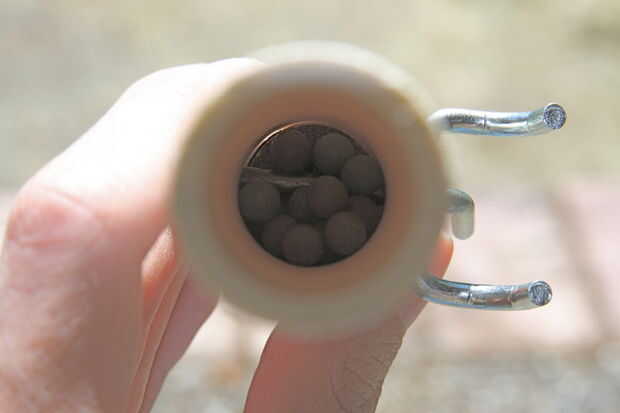Un 71/2 pulgada taco metal ligeramente por debajo del orificio del pasador de epoxy. Esto sirve como una estaca, permitiendo que la mina de viaje para fijarse al suelo.
