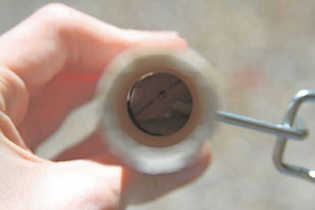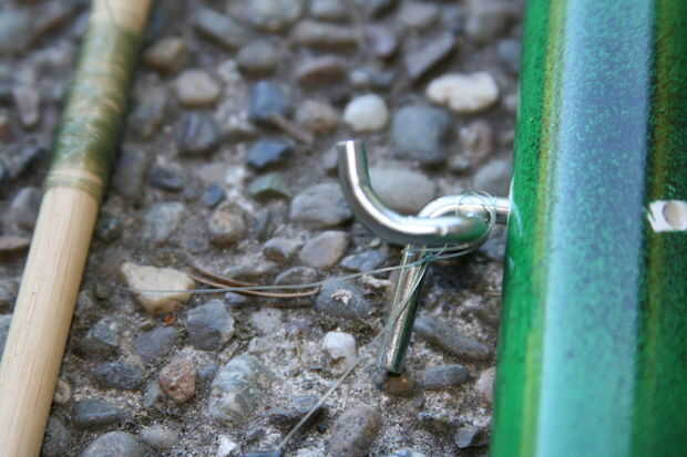 Utilice otro pasador pequeño de madera para juego de tripwire. Gradualmente de un extremo a un punto y el otro extremo de la fractura. El tripwire se sujeta a la división. Ate el otro extremo de tripwire para el perno de seguridad.