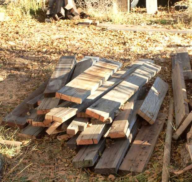Calienta mucho con leña así que estoy siempre en busca de madera. Lumbar desechos y descarta madera quemaduras sólo tan buena como cualquier otra cosa, cuando un amigo mío me dijo que tenía un montón de madera de una limpieza de inundaciones fui a buscar. Pronto era dueño de una gran colección de redwood usado que normalmente habrían ido a la descarga. He adquirido una segunda pila de una vieja cubierta de redwood que fue rasgada y substituida. Ahora tenía la madera que necesitaba para mi acera, salvo que no era todo bonito estándar tamaño piezas. Era una mezcla de 2 x 4 y 2 x 6 2 x 8 con variadas longitudes de 8 pies de largo para 12 pulgadas. Además la madera de la cubierta antigua estaba muy desgastada en la parte superior de años de exposición.