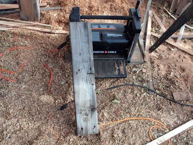 Una cepilladora madera afeita apagado la capa superior de la madera para exponer la buena madera por debajo. Es muy importante comprobar la madera para clavos ni tornillos ocultos. El avión gira a muy alta velocidad, y si golpea un objeto de metal en la madera lleva una muesca de las cuchillas. De ahí en adelante se verá una línea de cualquier cosa plano donde se dañan las hojas. Usted puede pasar la madera por otra vez para tomar la línea pero si llegas a muchos golpes en las láminas tienes un verdadero problema. Inicie con la Junta de compensación sólo las hojas y la profundidad de abajo desde allí. Normalmente se lleva al menos tres pases que hacerlo bien. Recuerda que vas a tener que cepillar todas las tablas con el mismo tamaño para evitar tener algunas placas que por encima de otros. Decidir desde el principio qué lado va a ser la parte superior. Generalmente recorren la parte inferior de la Junta Directiva al menos una vez el avión para despegar cualquier puntos altos pero no tienes que preocuparse por cortar a madera fresca, como no se va a mostrar. Un avión hace grandes montones de aserrín y muy rápidamente. Tener un plan para tratar con él. Rototill mi serrín en el jardín por lo que ha reciclado.