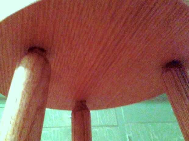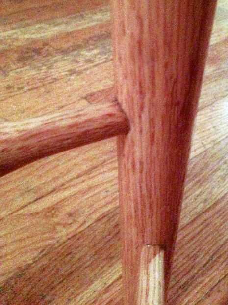 -Las piernas deben lijarse para que coincida con los orificios en el asiento, y se corta una abertura en la parte superior de este pasador para una cuña ser agregado más adelante.