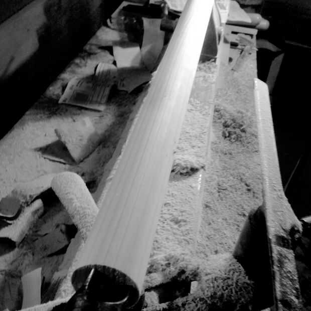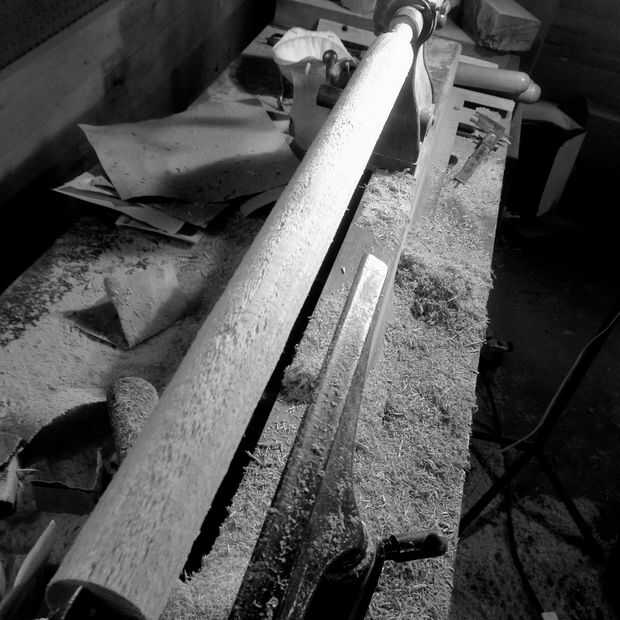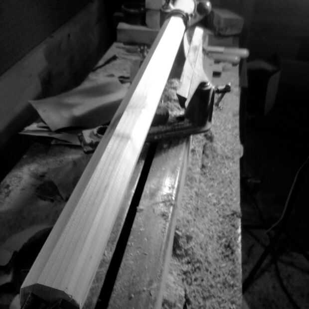 -Una vez que se preparó las tres patas y tres conectores, son ásperos dado vuelta bien vuelta y arena en el torno.