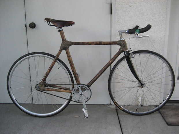 La moto que hice es una moto de pista para ir a trabajar. La bicicleta fue inspirada por Craig Calfee que hace mucho más agradable bicicletas de bambú. Realmente quería algo con un mínimo de tecnología lujo y fibra de carbono (aunque surgieron por la bifurcación del carbón). He utilizado fibras de epoxy y el cáñamo en todas las articulaciones (ningún retruécano previsto). La bicicleta de pista también facilita que es una moto muy simple - sin marchas, rutas de cable, freno trasero o derailers.