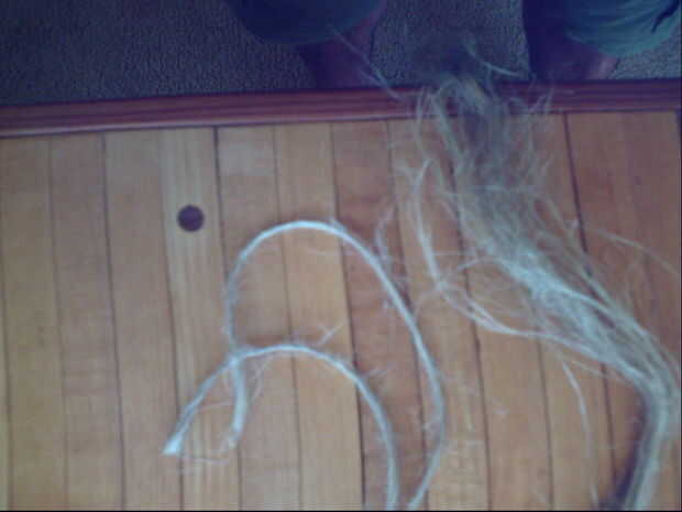 Usé dos tipos de fibras de cáñamo. He utilizado las fibras de cáñamo crudo (o semielaborada) y cordeles de cáñamo (dibujado hacia fuera - semi torcida, viene en un carrete). El cáñamo crudo parece mucho más fuerte así que utiliza como la mayor parte de la articulación y entonces usar la guita para reforzar las trincas.