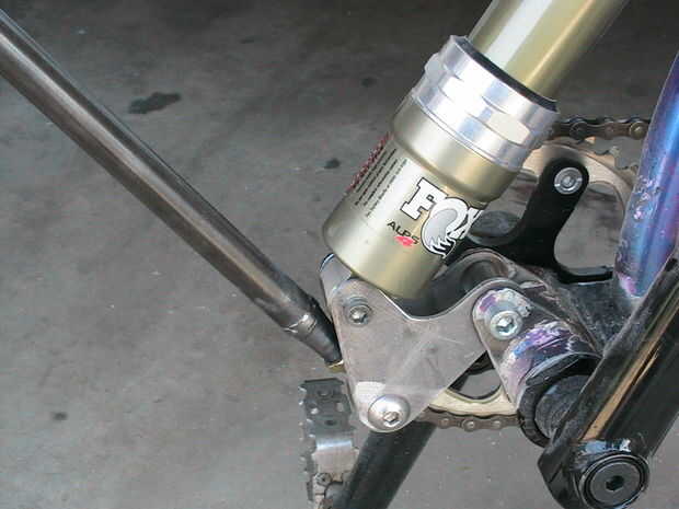 La suspensión es un diseño muy simple que funciona muy bien como la rueda trasera absorbe un golpe que tira de la barra del tirón en la articulación, causando el choque comprimir. Configurar mi suspensión por lo que se combe aproximadamente el 25% de la compresión, que está a la derecha para una moto de viaje más corta como este.