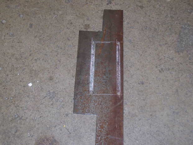 a continuación, tendrá que utilizar sus maquetas de cartón para poner el diseño en una pieza de metal de hoja. Ponga la cartulina sobre la chapa y trazar con la mayor precisión posible con un trozo de esteatita afilada. Entonces tendrá que cortar el Monte. Esto es donde es muy agradable tener una piraña muy. Si usted no sabe lo que es, es un gigante par de tijeras hidráulicas que cortan el metal. Hace cortes muy limpios, precisos y es excelente para cortar el contorno de tu montura. Sin embargo, si no tienes uno de estos, entonces un cortador de plasma es lo mejor, sin embargo al cortar a través metal de hoja esta gruesa, va a ser un poco de escoria y si tu no muy bueno en el habrá un poco de pulido para hacer al final para limpiarlo. Por supuesto, usted también puede usar un soplete de oxi-acetileno o una sierra para metales, pero tanto de los que no son muy buenas opciones.