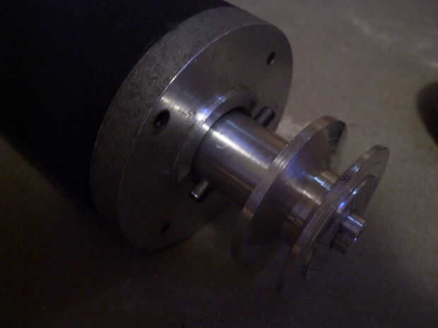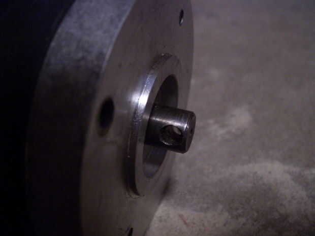 Desde las probabilidades de que usted obtener un motor exactamente como el mío son muy escasas, así que se trata de sólo una guía en cuanto a cómo mina mecanizada. Ya que mi motor ya tenía un pequeño agujero de centro, aburre el interior de una pieza de aluminio de 1 pulgada D material redondo al tamaño exacto necesario para caber sobre el eje. Esto es muy muy importante que este agujero es ABSOULUTLEY no de gran tamaño. Si es que usted tendrá que volver a hacer la parte. Luego perforar el agujero de alfiler y uno de los extremos hasta.5 pulgadas D para adaptarse a la polea de la que tenía a la máquina de mecanizado, pero probablemente sólo se podía comprar uno. (Me di cuenta después que el tamaño de la polea que dijo era el diámetro exterior, no interior, que es lo que me pareció)