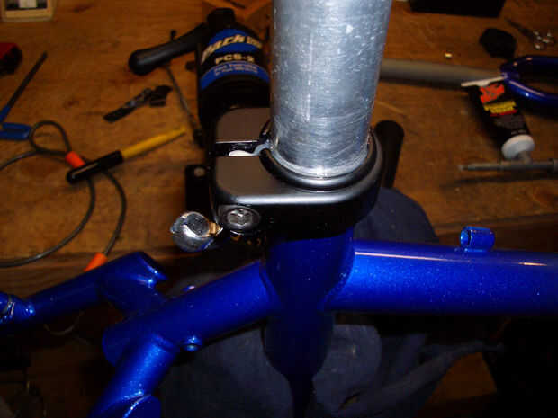 Inserte la abrazadera del asiento, y luego el post. Los diablos de la parte del post que será en el marco para evitar que se oxide a la grasa. Luego coloque el asiento en.