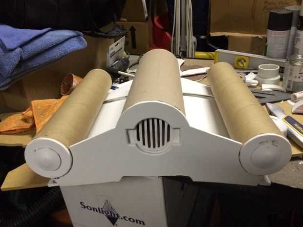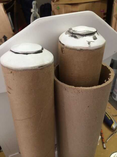 Para los tanques de combustible de la parte inferior, he pegado un pedazo plano de sintra al tubo y luego había cortado lo una vez fue seco.