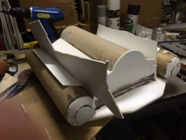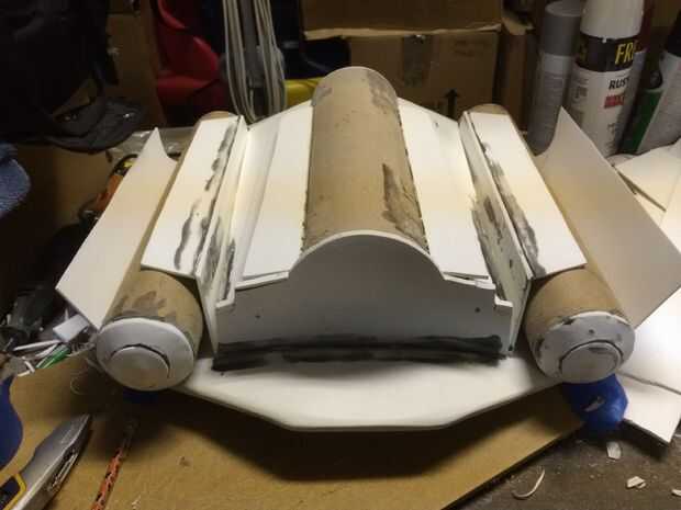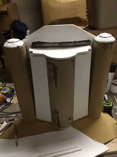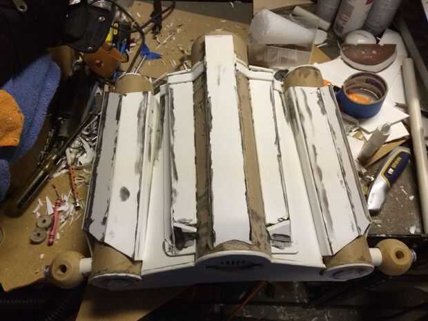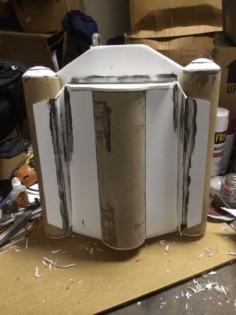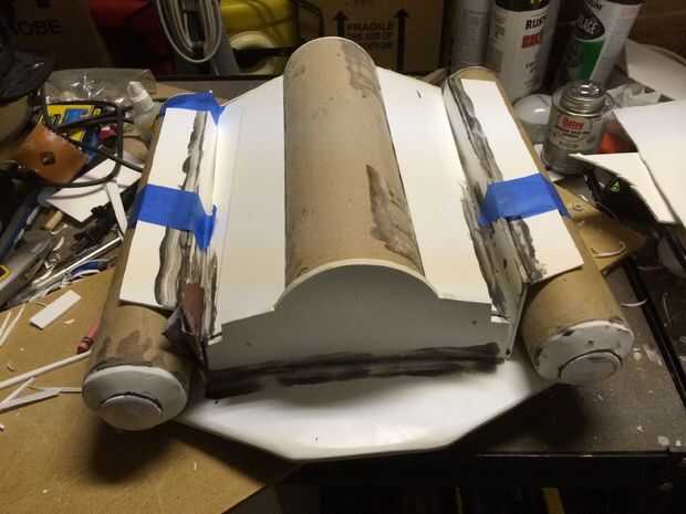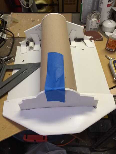 Sólo tengo un par de fotos en el proceso, pero luego usé el mismo proceso para construir los bordes extras y detalles en el exterior. Cuando construí la pieza superior «tira», ha acuñado esa pieza y había pegado plano pegado y había recortado los bordes.