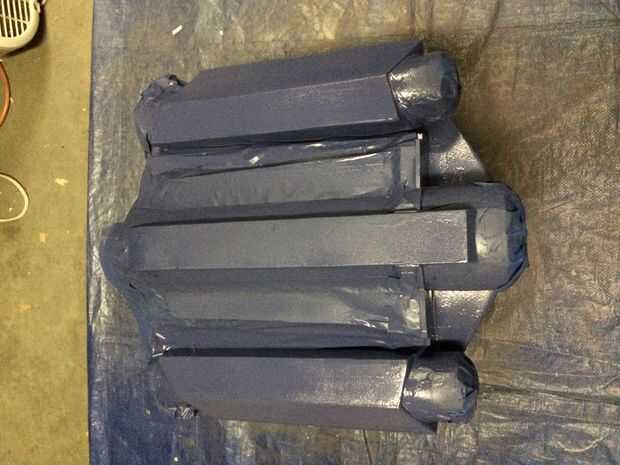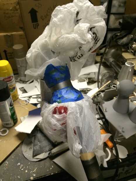 Toneladas más adhesiva y pintura. Si te fijas bien en la primera foto aquí, puede ver un extraño color amarillo en diferentes lugares. Es la máscara líquida después de que esté seco.