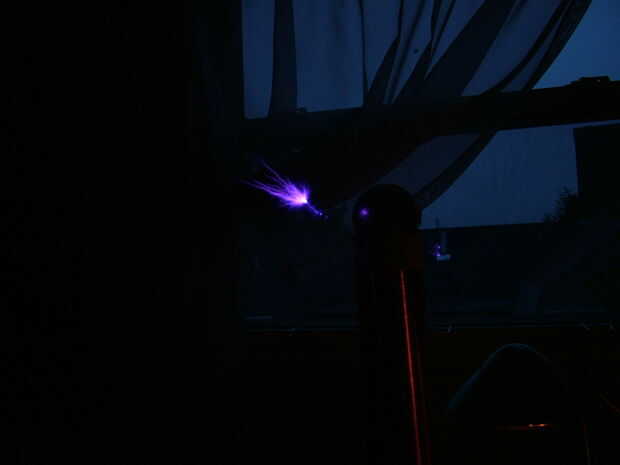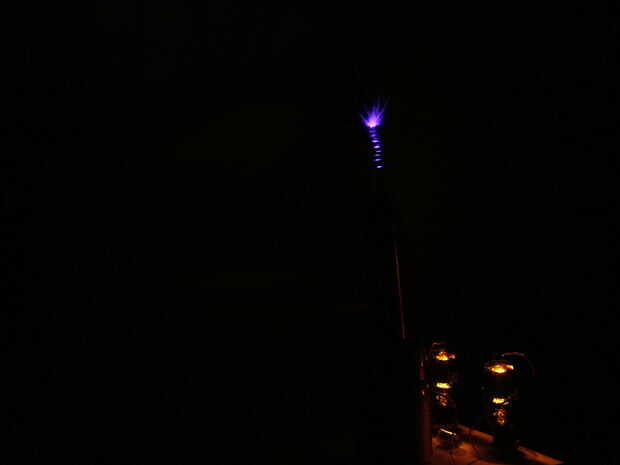 Aquí hay algunas fotos de la luz primera de mi bobina de Tesla: