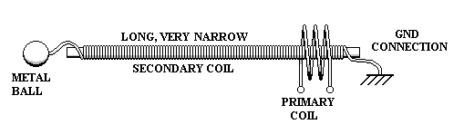 Secundarias más gordos, más cortos tienden a funcionar mejor en cierta medida, pero si son demasiado cortos, luego con primaria - secundaria puede arco surgen problemas. Un error común que a menudo hacen constructores de bobina de Tesla es enrollar una bobina secundaria muy larga y delgada. La idea errónea de que estos secundarios daría mejores resultados fue iniciada en el temprano al siglo de mid-20th por revistas de aficionado que contó con diagramas como este: