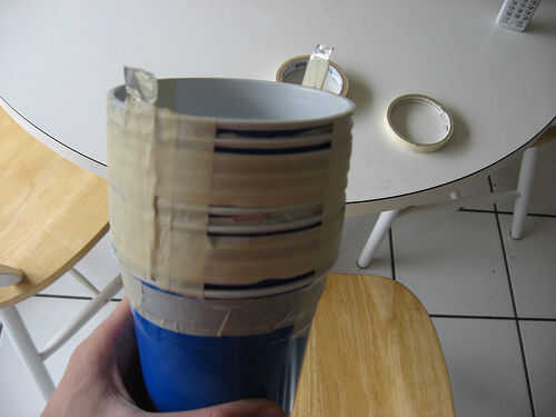 decidí ir la ruta más barata y construir un capacitor. La forma más sencilla es hacer un condensador de agua salada, utilizando sal hoja de agua, petróleo y aluminio. Envolver la botella en papel de aluminio y llenarlo con agua. Tratar de que cantidades iguales de agua en cada botella, ya que ayuda a mantener la potencia de salida estable. La cantidad máxima de sal que puede poner en el agua es.359 g/mL, pero esto termina siendo una gran cantidad de sal, así que usted puede bajar el tono de la cantidad mucho (yo usé 5 gramos). Sólo asegúrese de que él utilice misma cantidad de sal y agua. Ahora poner lentamente unos pocos mL de aceite en la botella. Hacer un agujero en la parte superior de la tapa y poner un trozo de cable en él. Ahora tienes un condensador completamente funcional, van hacer 5 más.