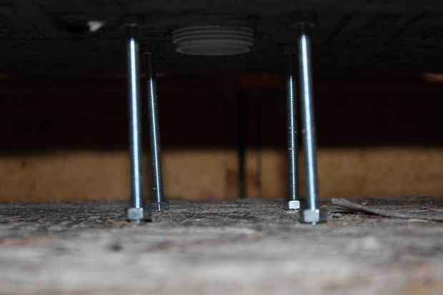 tengo dos 1/4" madera contrachapada cortado del mismo tamaño y cuatro pernos y tuercas de 12. Me puse como se muestra en la imagen. Taladrar cuatro orificios para los tornillos en el medio de las dos piezas de madera contrachapada. Dejando espacio suficiente entre los pernos de la bobina secundaria. Luego usé un poco taladrado de la puerta-nob para perforar todo el tamaño de mi bobina secundaria. Luego en van a bordo, luego cuatro pernos para apretar la Junta hacia abajo, entonces cuatro pernos más para la próxima Junta en. Entonces la siguiente junta, entonces cuatro más los pernos para apretar ese tablero.