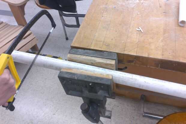 2. Corte de 4, 3" piezas del 3/4" PVC, también se puede utilizar una sierra para metales o una sierra de banda.
