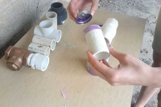 3. Tomar otro 1 1/4" PVC y prime y el borde exterior de cemento. Luego de cemento dentro del otro extremo de la válvula de bola. Colocar las piezas juntas y gire.