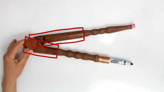 Siguiente para arriba, las piezas de conexión. Tienen mortajas que se ajusten las espigas de la ronda sostenedor de la pluma y puntero de goma y están conectados con un tornillo en la parte superior.
