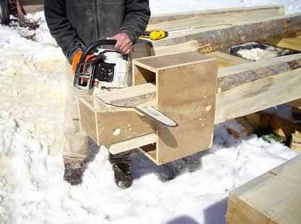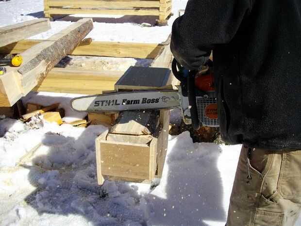 El registro de la vuelta y vi las muescas usando la plantilla para guiar la sierra. Después de hacer los dos cortes de una muesca, retire el trozo de madera y hacer una segunda pasada. Esto hará que la sierra corte muy suave para un buen ajuste.