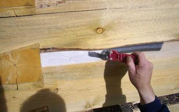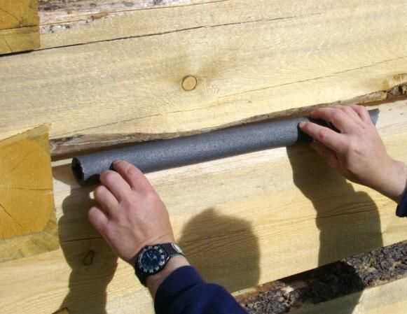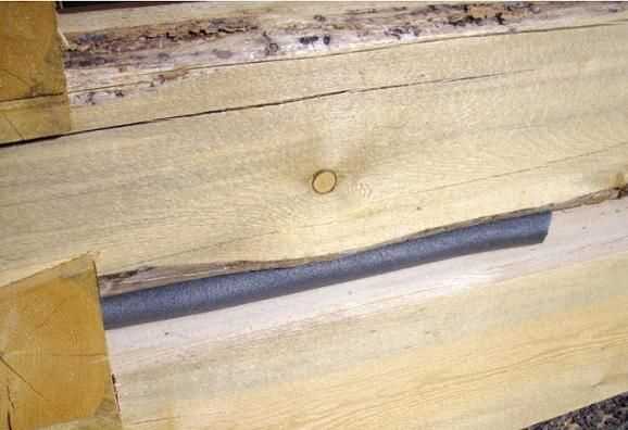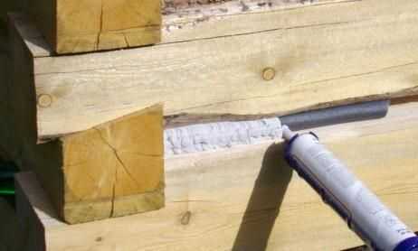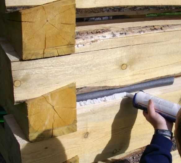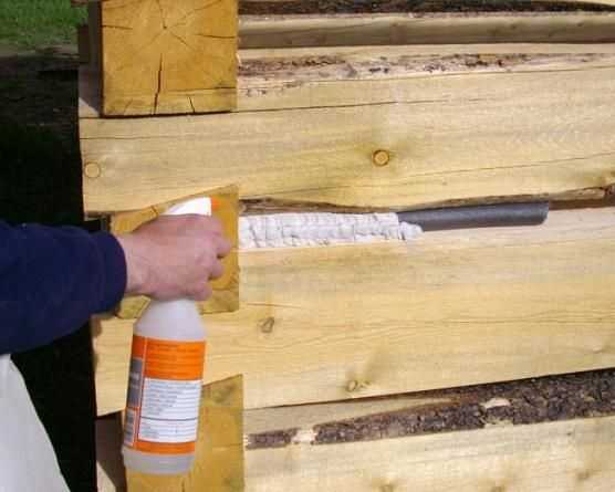 Instale la varilla de soporte de espuma en las articulaciones. Aplicar el chinking. Humedecer con un atomizador y suave con una pequeña paleta o espátula modificada.
