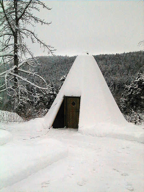 Lo que esta choza como un modelo de prima es la cabaña que nuestros indígenas suecos llamados a Sami, han construido y utilizado por muchos siglos.