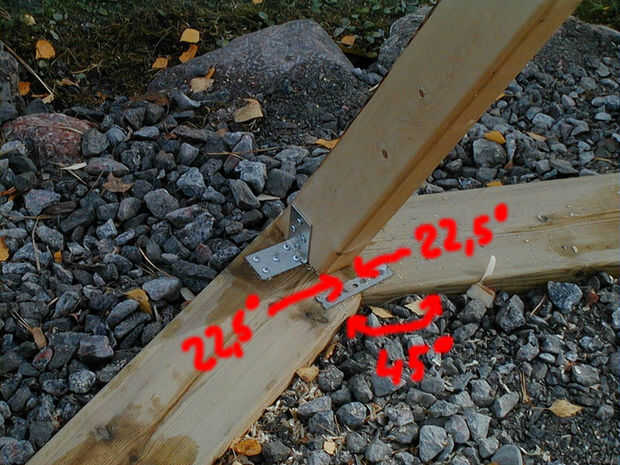 La parte inferior del marco que la cabaña va a pisar, se hace de 8 pedazos de 2 por 6 pulgadas presión vigas con ambos extremos se corta en ángulo de 22,5 grados.