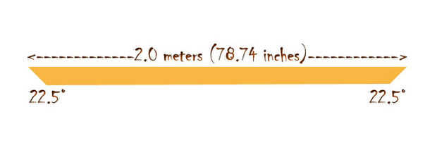 La longitud de todas piezas del marco inferior 8 es 2,0 metros (78,74 pulgadas), messured de los dos bordes exteriores de los cortes en ángulo de 22,5 grados (ver dibujo).