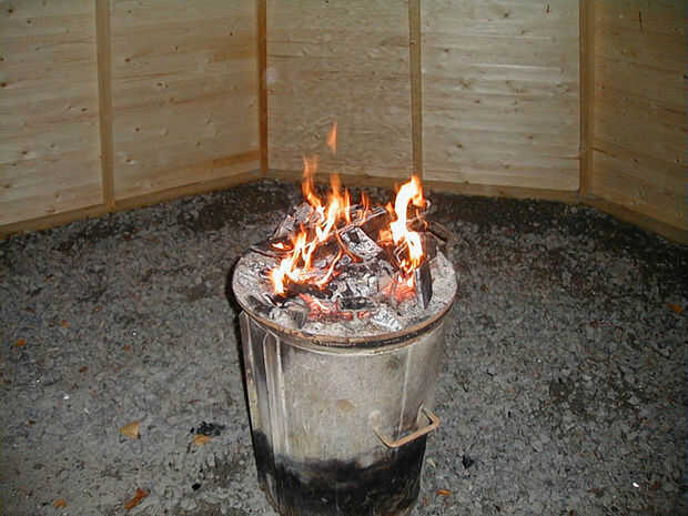 tuve que testfire la cabaña, así que trajo en una basura vieja puede y encendió un fuego con ello... se ve bien...